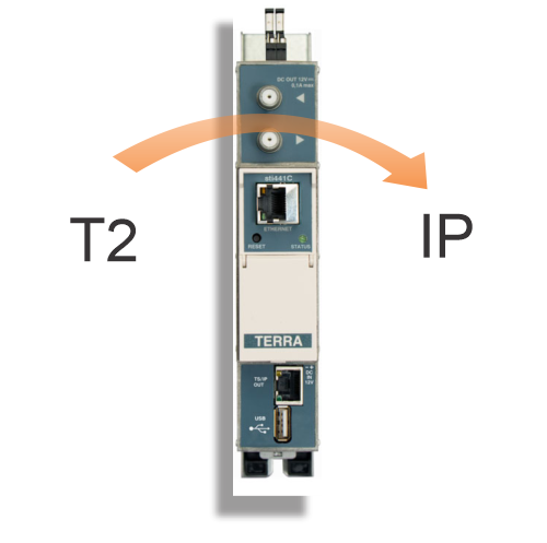STI441C DVB-T/T2/C to IP streamer designed to broadcast in multicast on an IP network the services (TV or Radio programmes) issued from FTA or encrypted digital reception. The streamer can descramble encrypted services by two conditional access (CA) modules.