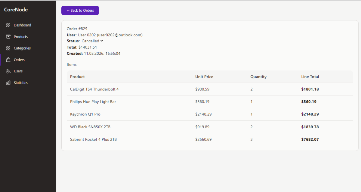 Your store is visited by a large number of users and pages open with minimal latency. Speed < 2 seconds. Go + React.