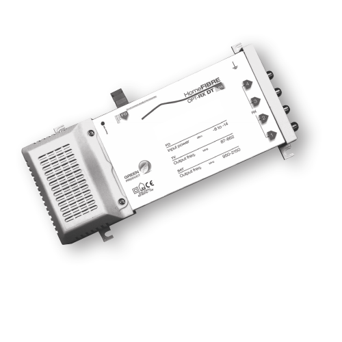 The OPT-RX DT receiver converts the incoming optical signal in to 4 universal outputs, therefore enabling the TV and SAT signal to be available for 4 different users, with all the services and products offered by the broadcaster, as if they were directly connected to an independent aerial or dish.